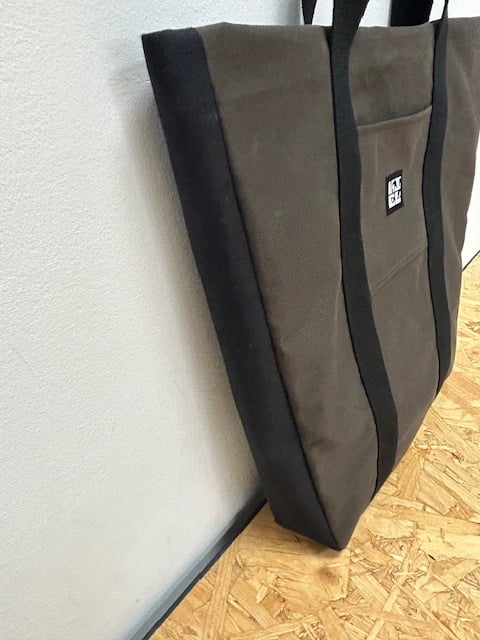 Made from a combination the water resistant brown cotton drill and washed black cotton, this is a great bag for everyday use. With three different sized internal pockets, it's designed for everyone's needs. A long pocket for either a water bottle or BAGuette. A pocket for a tablet, book or your notes and a zipped pockets for keys. ect.
